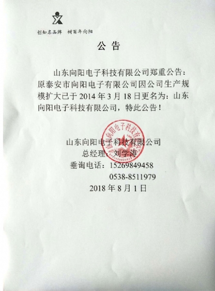 山東向陽電子科技有限公司企業(yè)公告如下: