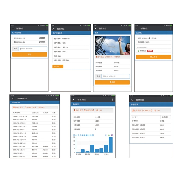 ●實現微信在線自助繳費。 支付方式支付微信支付。查詢近6個月的繳費記錄。統(tǒng)計顯示近12個月的用電量信息。歷史抄表記錄查詢。