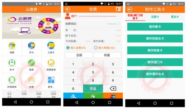 產品功能:1.可實現移動便捷的收取水電費;2.可實現用戶卡補卡功能;3.可實現制作工具卡功能;4.可實換表功能;5.支付方式支持微信支付,支付寶支付和銀聯支付;6.可實現打印。